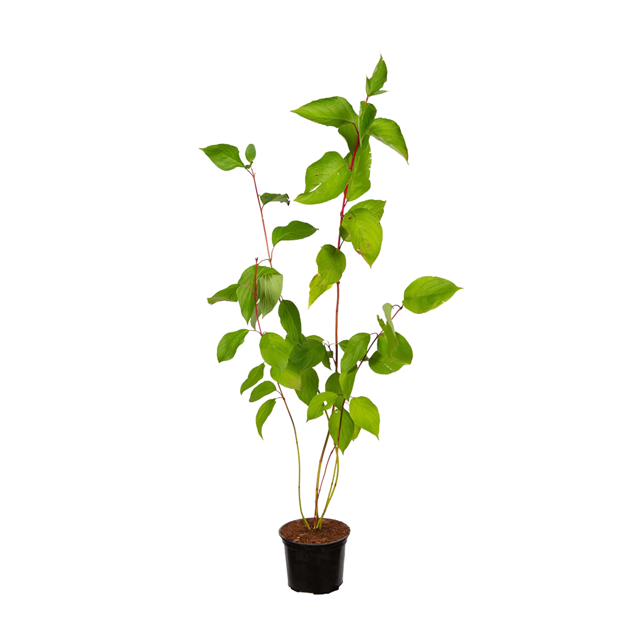 De witte kornoelje Sibirica (Latijnse naam: Cornus alba 'Sibirica') onderscheidt zich van andere heesters door de fraaie rode takken. Zeker de nieuwe éénjarige twijgen hebben een schitterende, felrode kleur. De frisgroene bladeren die in het voorjaar verschijnen, verkleuren prachtig rood in de herfst en vallen daarna af. Vervolgens geven de kale struiken dankzij de rode takken kleur aan jouw wintertuin. De naam witte kornoelje 'Sibirica' verwijst naar de witte bloemen en besjes die in mei en juni bloeien en groeien aan deze Cornus soort.